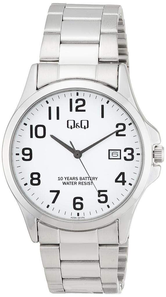 Citizen Analog Watch with Battery Waterproof Metal Silver Q&Q Men's 10-Year Life, Band, (A23A-001PK)