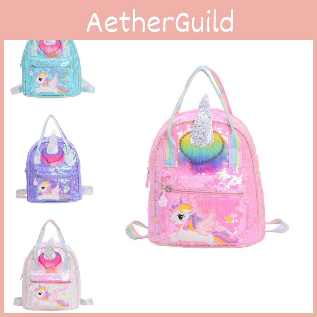 Colorful Pattern Unicorn With Sequins Children Backpack Kindergarten For
