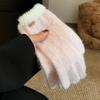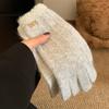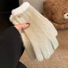 Soft Waxy Rabbit Fur Gray Knitted Wool Five Finger Thickened Warm Gloves for Women's Winter Cycling Cold and Windproof Furry