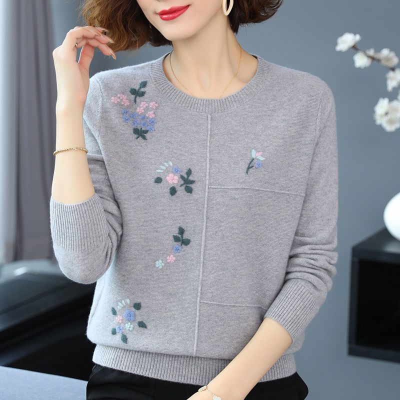 Women's Crewneck Plus Size Sweater Embroidered Loose Pullover Knitwear Stretch Knit Top Jumper Spring Autumn