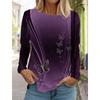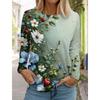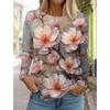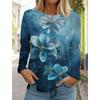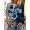 Women's 3D printed flower T-shirt, fashionable long sleeved round neck regular top, holiday weekend blue spring and autumn outfit