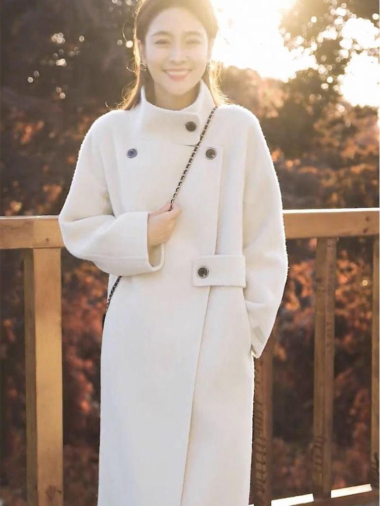 Popular Abrigo de Lana para Mujer 2024 - Estilo Coreano Otoño/Invierno, Cuello Alto Hepburn, Lana Doble Faz