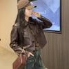 Retro Chinese Style Stitched Leather Jacket Women's Casual Top