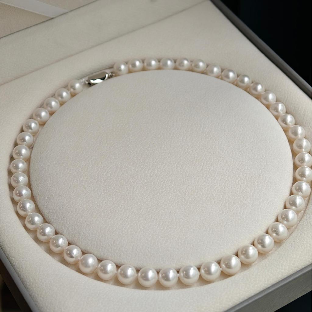 Collar de Perlas de Agua Dulce Naturales 8-9mm Redondas Brillo Fuerte Plata S925 Gargantilla del Día de la Madre con Caja de Regalo