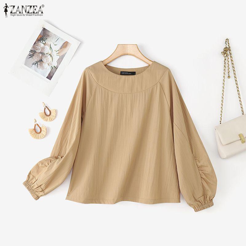 ZANZEA Women Casual Round Neck Solid Color Loose Long Sleeve Blouse