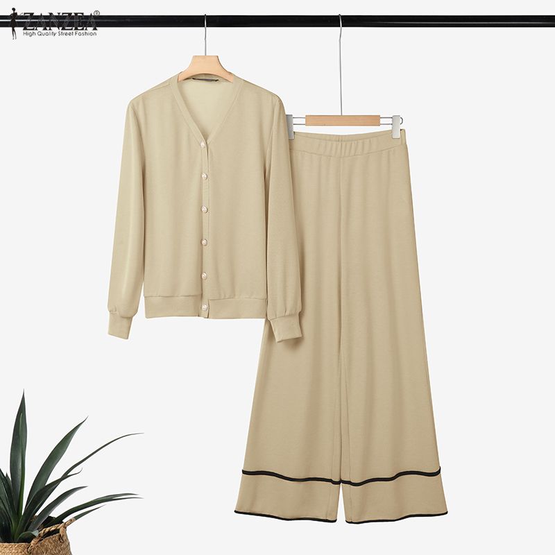 ZANZEA Women Long Sleeve Blouse and Pants Casual Autumn Two Piece Suit Sets