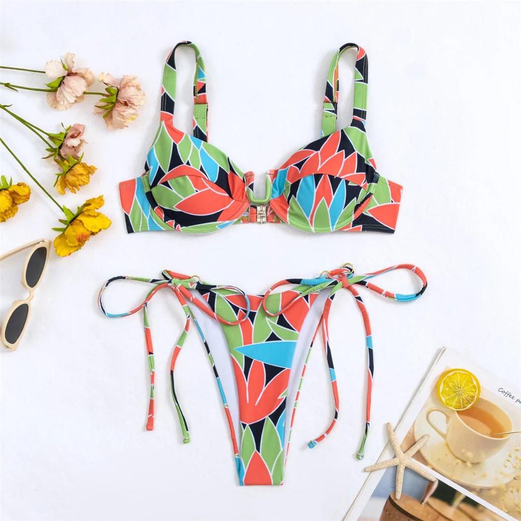 Colorful Printed Underwired U Neck Bikini Women Swimwear Female Swimsuit Two-pieces Bikini set Bather Bathing Suit Swim