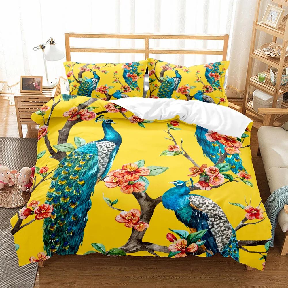 3pcs Graceful Peacock Art 3D Bedding Set Single Twin Double Queen King Cal King Size Bed Linen Set Washed Cotton Duvet Cover