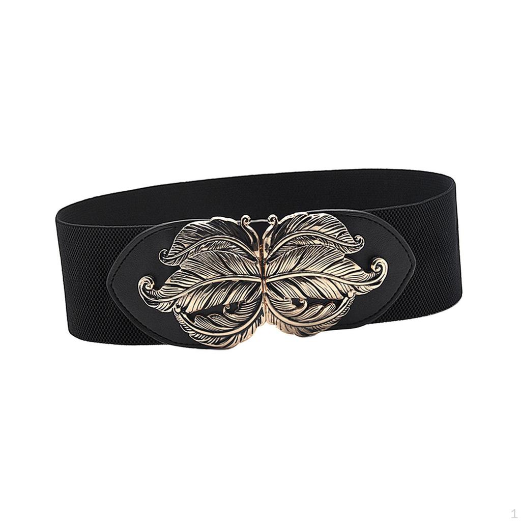 - 【Elegant Design】: This vintage women's stretch wide waist belt features a metal leaf buckle, elegant and stylish, making it a versatile and fashionable accessory for your outfit