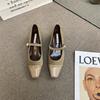 2025 spring and autumn new fashion versatile French retro Velcro Mary Jane shoes women's middle heel single shoes square head