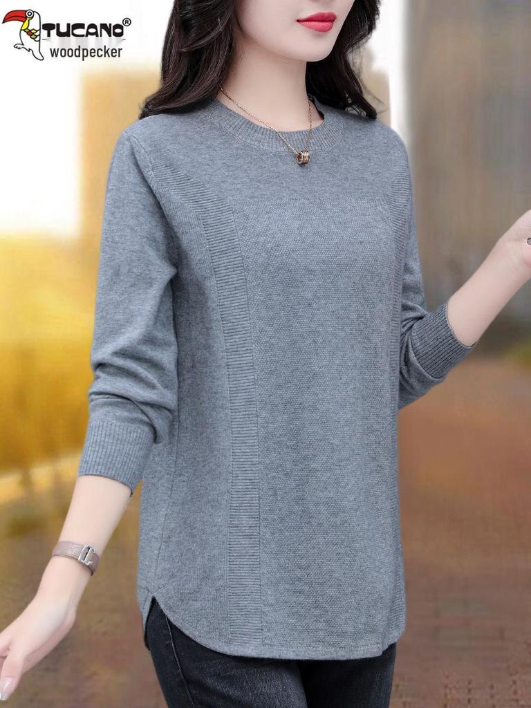 Women's 2025 Woodpecker Knitted Sweater: Fashionable Long Sleeve Autumn/Winter T-Shirt for Middle-Aged Mothers