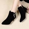 Women's Soft Leather Mid-Calf Chunky Heel Chelsea Boots for Spring and Autumn