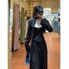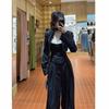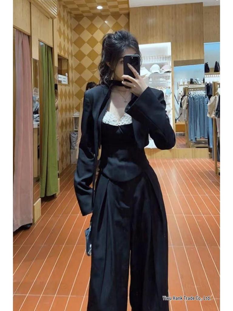 2025 French Anti-Aging Lace Slimming Long-Sleeve Outerwear with High-Waisted Wide-Leg Floor-Length Pants