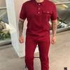 Conjunto de dos piezas de camisa y pantalones casuales de moda de color sólido de verano para hombres