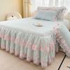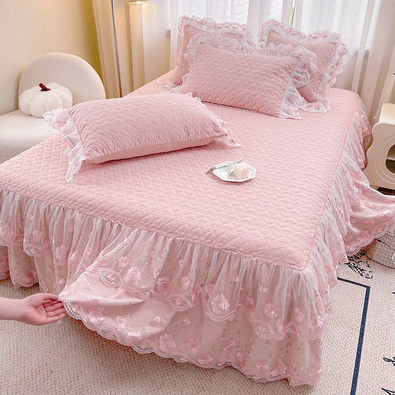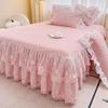 Korean Style Lace Bed Skirt & Sheet Set - 3-Piece Quilted Dustproof Full Wrap Bed Cover