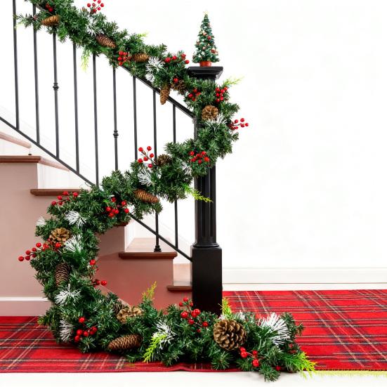 Yousheng 180/270CM Guirnalda Navideña de Pino Artificial con Lazo Bayas Rojas Piñas Agujas de Pino Falsas Ratán Chimenea Repisa Porche Decoración Colgante