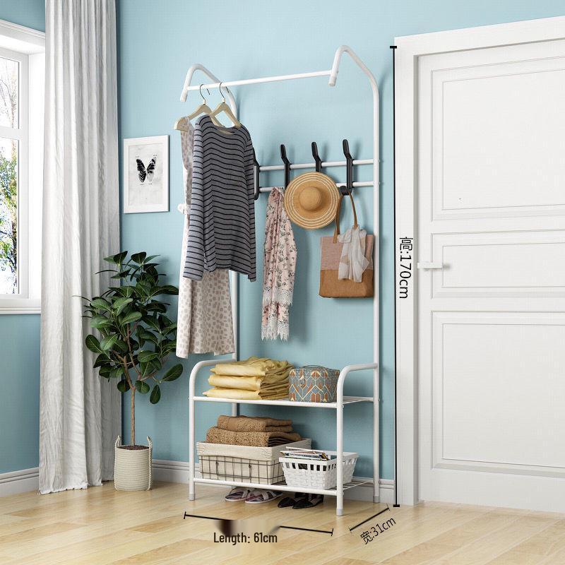 Perchero y Ropero Sencillo para Dormitorio con Ganchos y Estante de Almacenamiento Multicapa