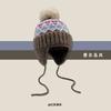 Maillard style autumn and winter jacquard knitted hat women's versatile warm ear protection cold protection fashion versatile hairball cold hat