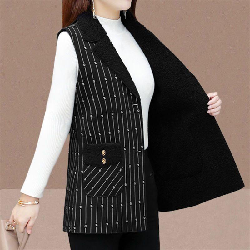 Plus Size Fleece-Lined Vest for Middle-Aged & Elderly Women - Stylish Autumn/Winter Suit Collar