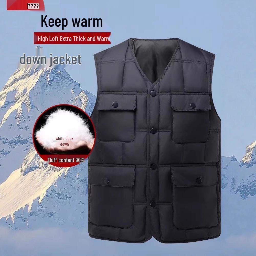 Men's Lightweight Winter Down Vest - Multi-Pocket, Thickened, Warm Workwear for Middle-Aged and Elderly.