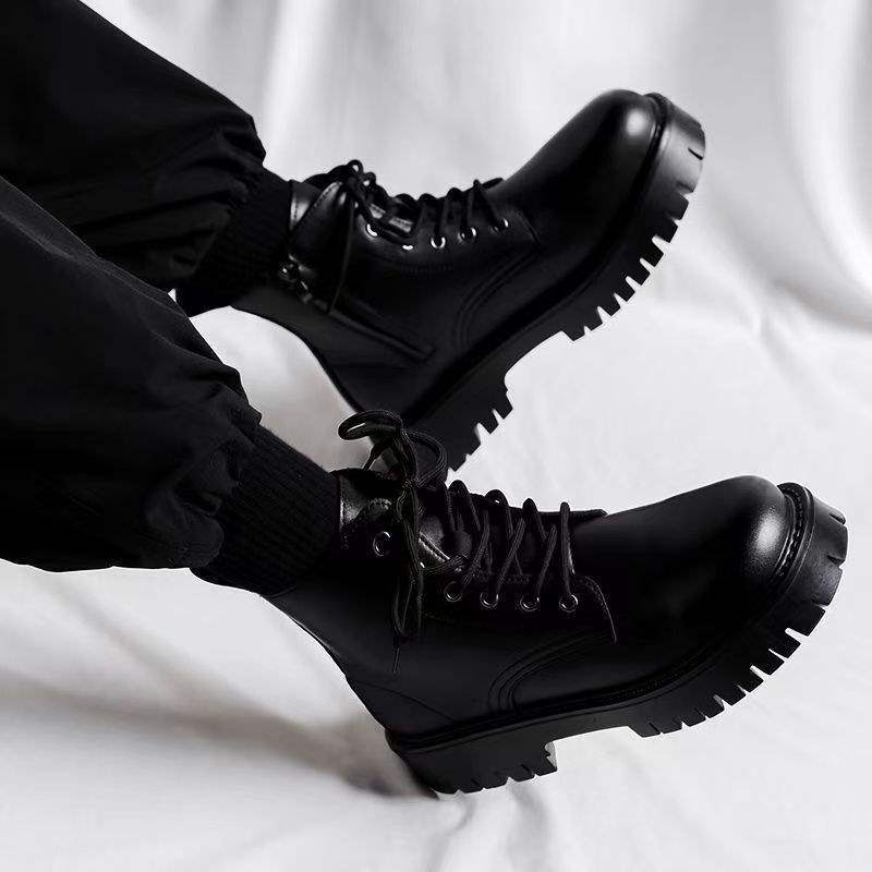 Botas Martin para hombre otoño nuevo británico de caña alta cremallera lateral zapatos de cuero negro de caña media con aumento de altura tooling Chelsea botines