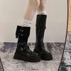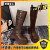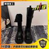 Black two-wear stacked boots retro small thick-soled 2025 tall new spring and autumn knight boots