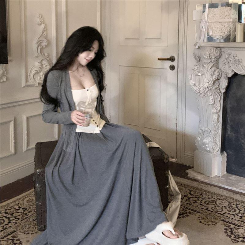 2025 Spring/Autumn Stylish Spliced Two-Piece Top & Long Skirt Set for Women