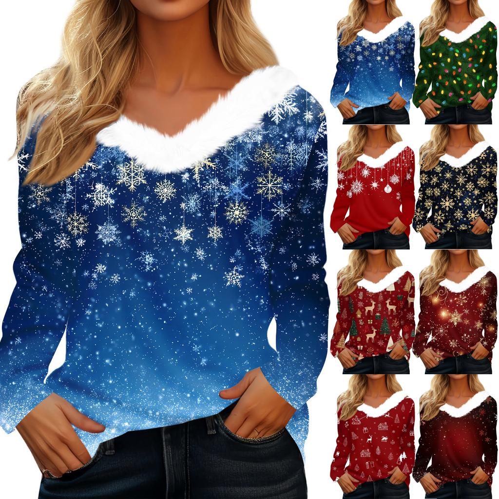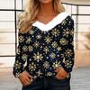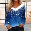 Women's T Shirt Tee Christmas Print Shirt Long Sleeve Party Christmas Fleece Collar V Neck Top