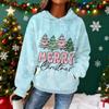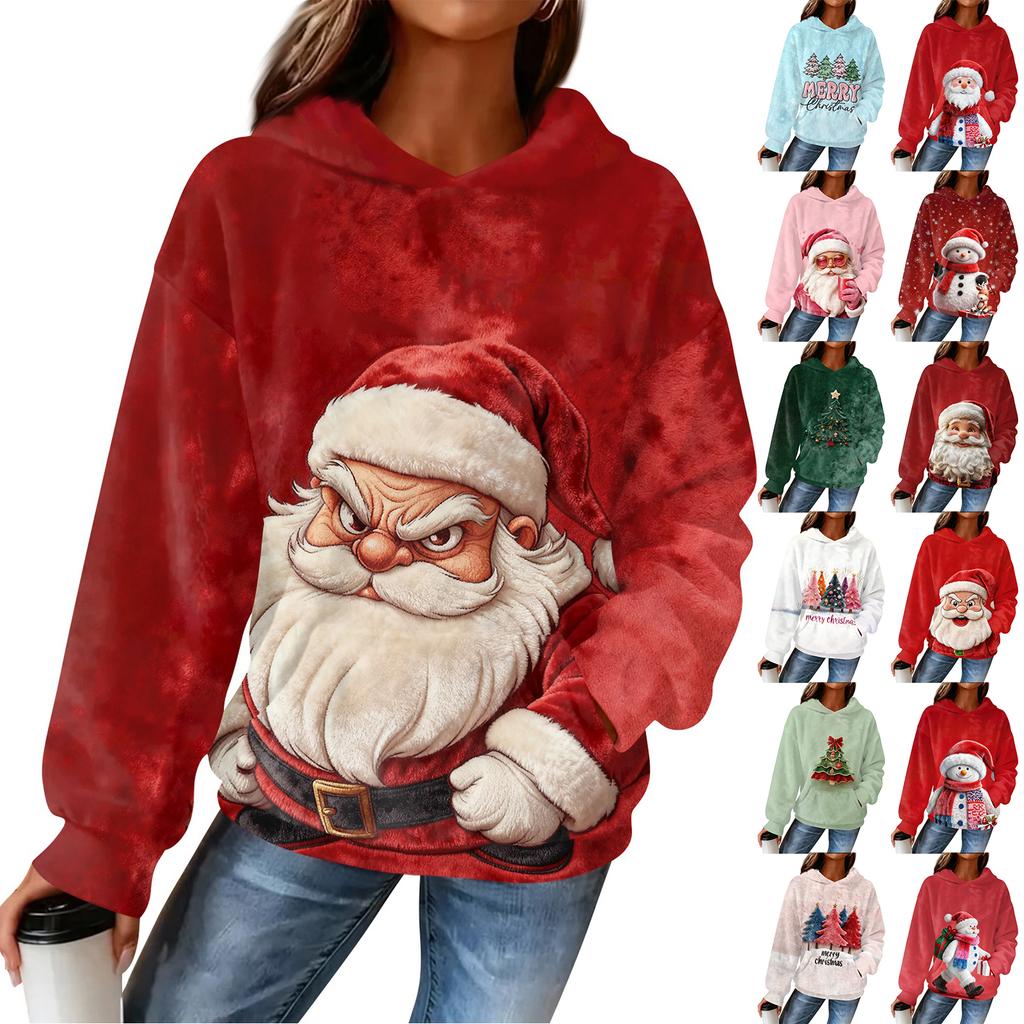 Sudadera con capucha de franela con estampado navideño de manga larga para mujer
