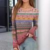 Camiseta de Fondo Ajustada para Mujer y Invierno Moda Casual Estampado Degradado Cuello Redondo Jersey Manga Larga Top