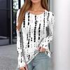 Camiseta de Fondo Ajustada para Mujer y Invierno Moda Casual Estampado Degradado Cuello Redondo Jersey Manga Larga Top