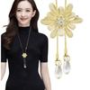 Cadena de Suéter Ajustable Coreana, Collar de Mujer de Alta Gama, Nueva y Moderna Flor de Piedra Ojo de Gato con Colgante de Borla Versátil.