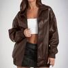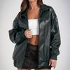 Women's Fashion Leather Jacket, Long-Sleeved, Lapel, Zipper, Side Pockets, Casual Windbreaker Coat