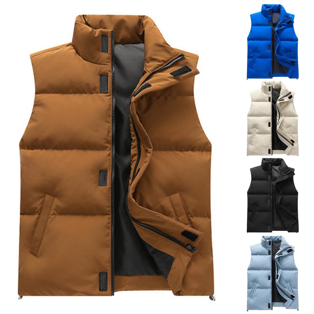 Men's And Women's Casual Solid Color Sleeveless Zipper Vest Men's Stand-up Collar Hooded With Cotton Warm Waistcoat