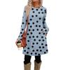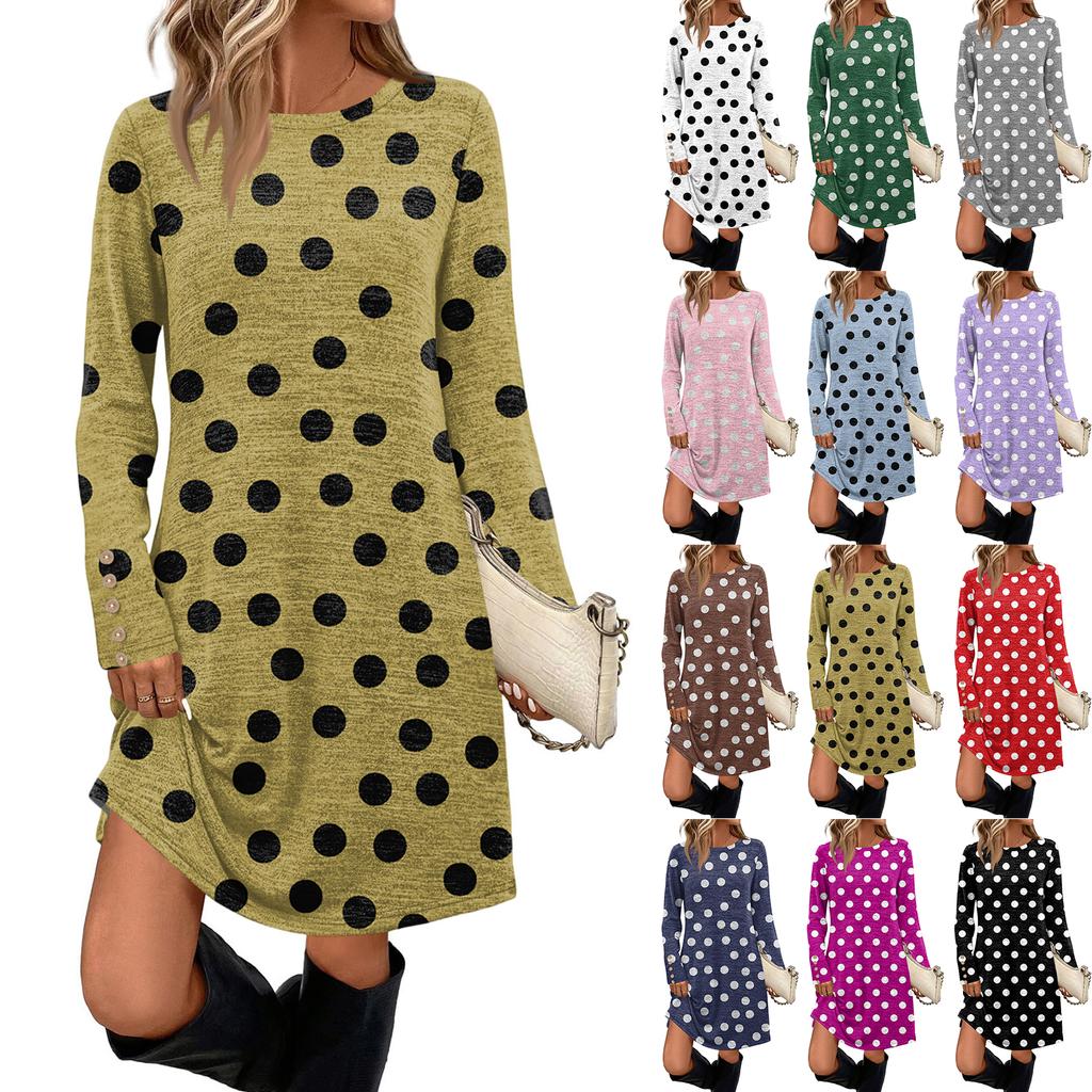Women's Fashion Casual Dress With Pockets, Decorative Buttons, Polka Dot Prints, Round Neck And Long Sleeves