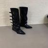 2025 new belt buckle pointed trousers boots Spice girl wedge heel high heel knight boots children but knee thin boots