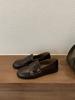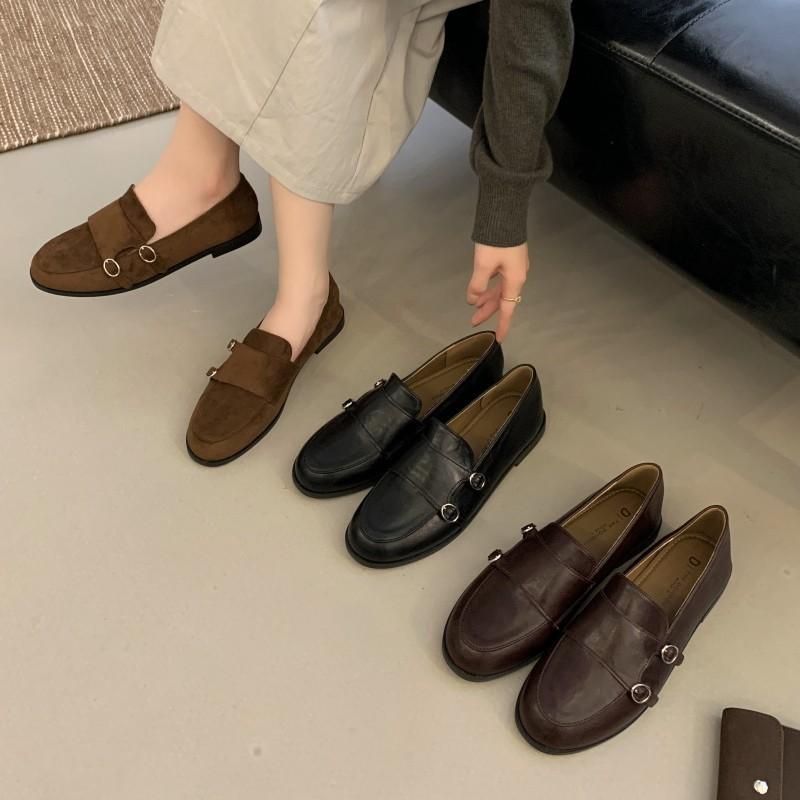 2025 new retro double buckle with loafers women's British style round head small leather shoes one pedal low heel commuter shoes