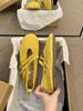Cowhide version~ round head retro yellow Mary Jane shoes women's soft-soled cross-strapped ballet commuter single shoes women's ladyshoes