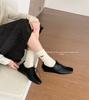 British style retro women's soft-soled one-pedal single shoes women's 2025 autumn new French black lace-up square head loafers