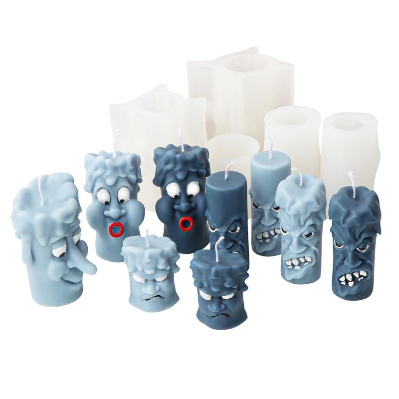 3D Joy Angry Face Pillar Funny Expression Silicone Candle Mold DIY Lively Facial Expression Pillar Wax Mould Home Decor Gifts