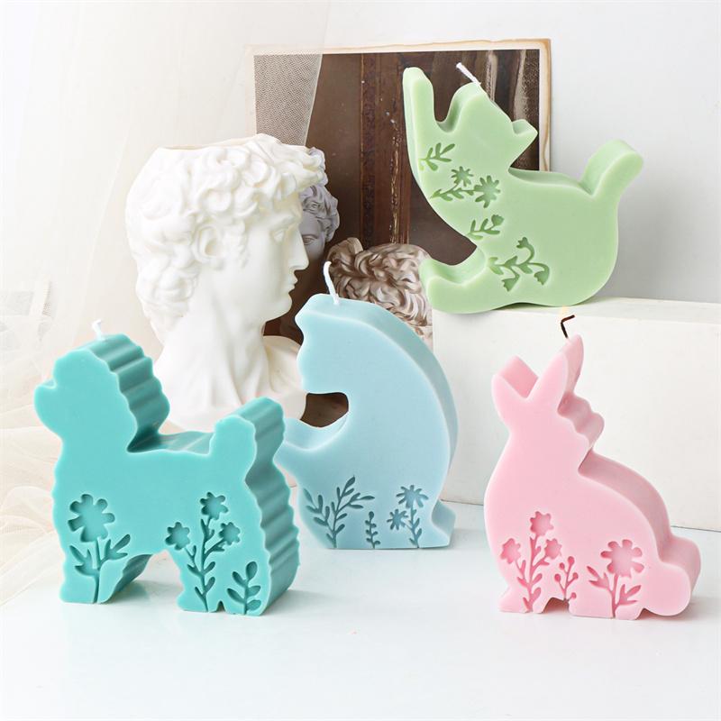 3D Flat Animal Flower Cat Dog Silicone candle mold DIY Flower Animal Bunny Easter Egg Festival Gift Home Decoration Gifts