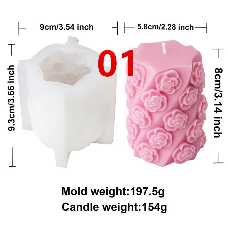 3D Relief Leaf Rose Cylinder Bee Silicone Mold DIY Valentine's Day Romantic Fragrance Candle Plaster Resin Craft Home Decor