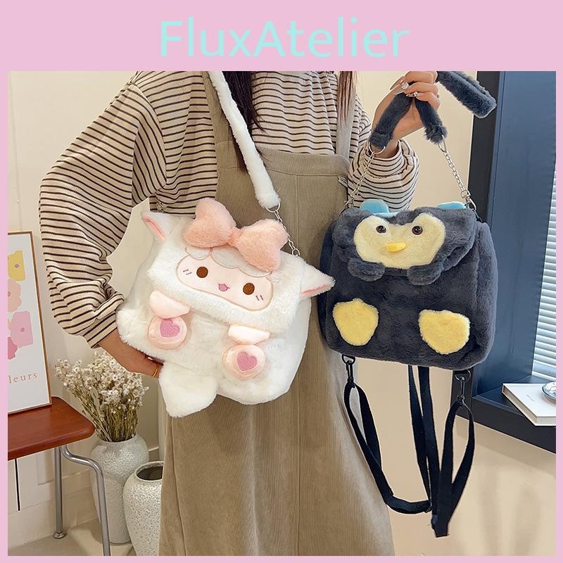 Penguin Little Lamb Bowknot Cartoon Pattern Plush Backpack Girls Crossbody Bag