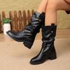 Tacones Altos de Mujer Gótico Botines al Tobillo Mujer Tendencia Invierno Lazos Elegantes Cuero Gruesos Botas Mujer Sexy Nieve Plataforma Zapatos de Boda