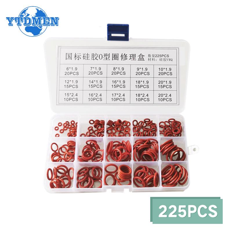 225PCS Red Silicone O Rings Sealing Gaskets Set High Pressure O-Rings Silicon Washer Rubber Kit