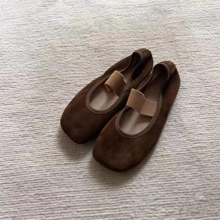 Leather retro niche suede square head shallow mouth comfortable flat ballet shoes with Mary Jane single shoes women's shoes