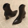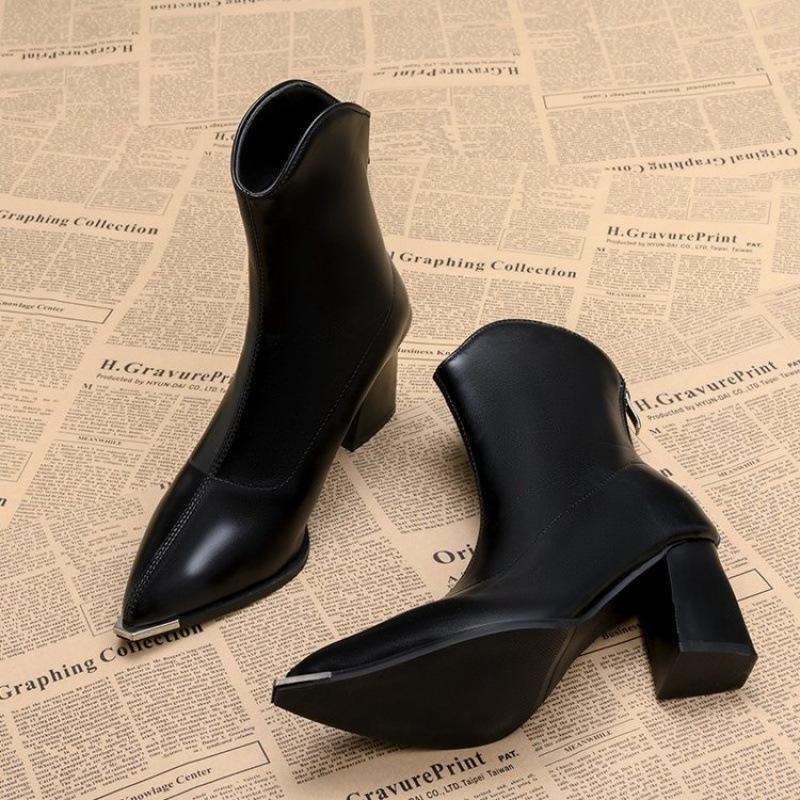 French British style short women's boots thick heel 2025 new autumn and winter fashion versatile retro thin high heel short boots women