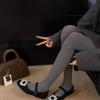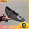 Grey rhinestone flat-bottomed Mary Jane shoes for women's winter wear, new Korean version of square-headed woolen single shoes, velvet t
