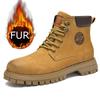 Cálidas Nuevas Botas de Invierno de Felpa para Hombre Marca Amarillo para Exterior con Cordones Botas Cowboy de Cuero para Motocross Moda Antideslizantes Botines para Hombre