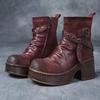 Women Motorcycle Boots Genuine Leather New Zip Round Toe Women Shoes Sewing Handmade Retro Ankle Platform Boots